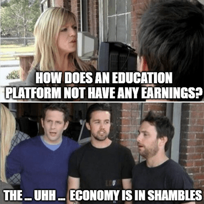 All the usual suspects filled Chegg’s report. Inflation is ruining everything! The economy is in shambles! Nobody’s enrolling in schools or our platform! It’s … umm … all of the above, actually.