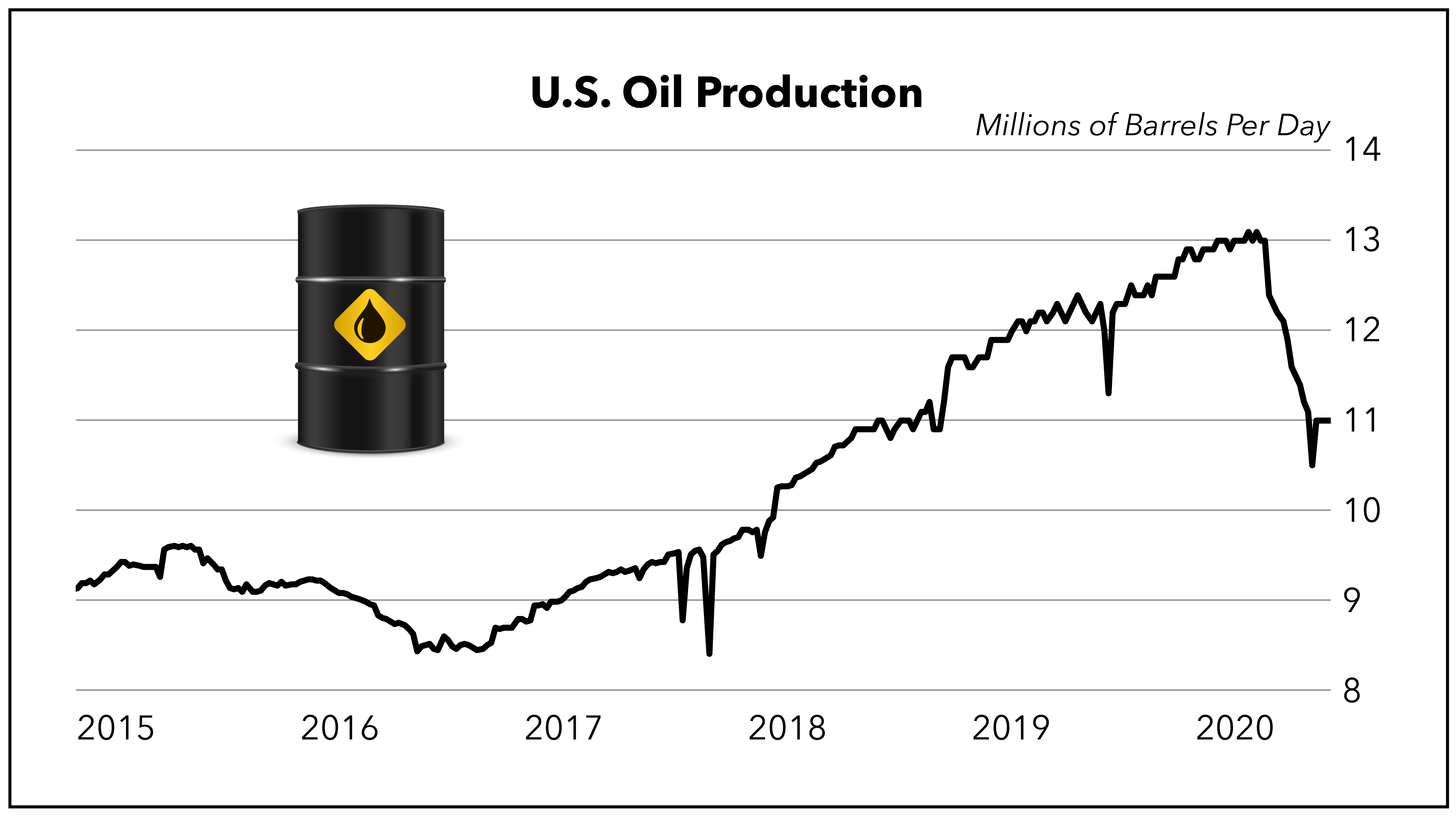 U.S. oil production peaked in March 2020 at more than 13 million barrels per day. From that point, oil production fell more than 2.6 million barrels per day in four months. That’s the most precipitous fall in oil production in U.S. history.