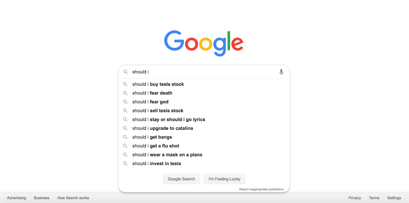 In fact, if you Googled “Should I…” last week, the first result was: “Should I buy Tesla stock?”