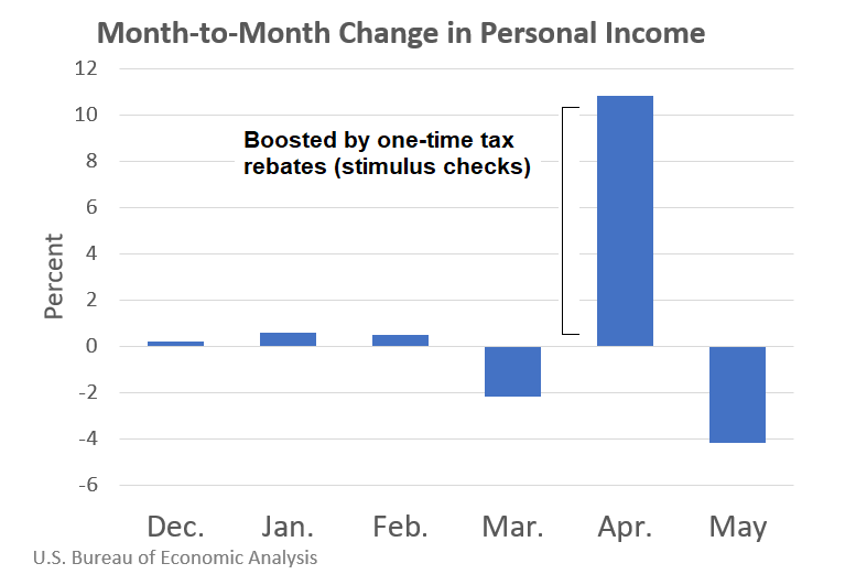 But income dropped 4.2% in May. That’s even with many of those benefits still in effect.